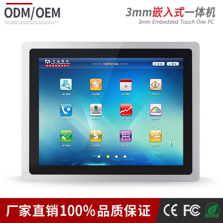 ? ? ? 智能工業(yè)平板一體機(jī)外殼采用鋁合金材料,鑄模沖壓,陽極氧化,拉絲工藝制作而成,致使面框厚度達(dá)到3mm,面板無縫隙純平顯示設(shè)計(jì)達(dá)到IP65要求;內(nèi)部集成X8架構(gòu)Intel Baytrail平臺(tái)工控主板(自主開發(fā))、固態(tài)硬盤內(nèi)存、工業(yè)高清液晶屏及十點(diǎn)電容觸摸屏等主要部件,它具有精美輕巧,防塵防水,堅(jiān)固耐用、安全穩(wěn)定,操作方便等特點(diǎn)。