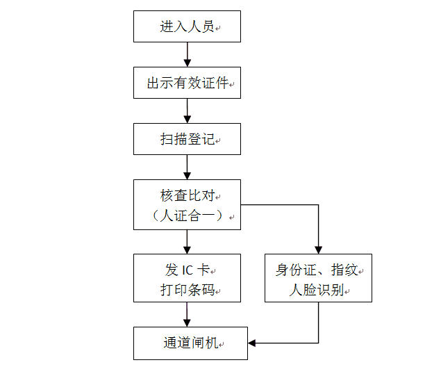 ? ? ??進出人員經過訪客登記管理系統登記后,訪客管理系統將人員信息寫入IC卡內或者打印條碼信息,進出人員將IC卡在閘機上面輕輕一刷或者讀取條碼信息便可自由出入,同時系統也可以利用身份證方式、指紋方式進出通道閘機。