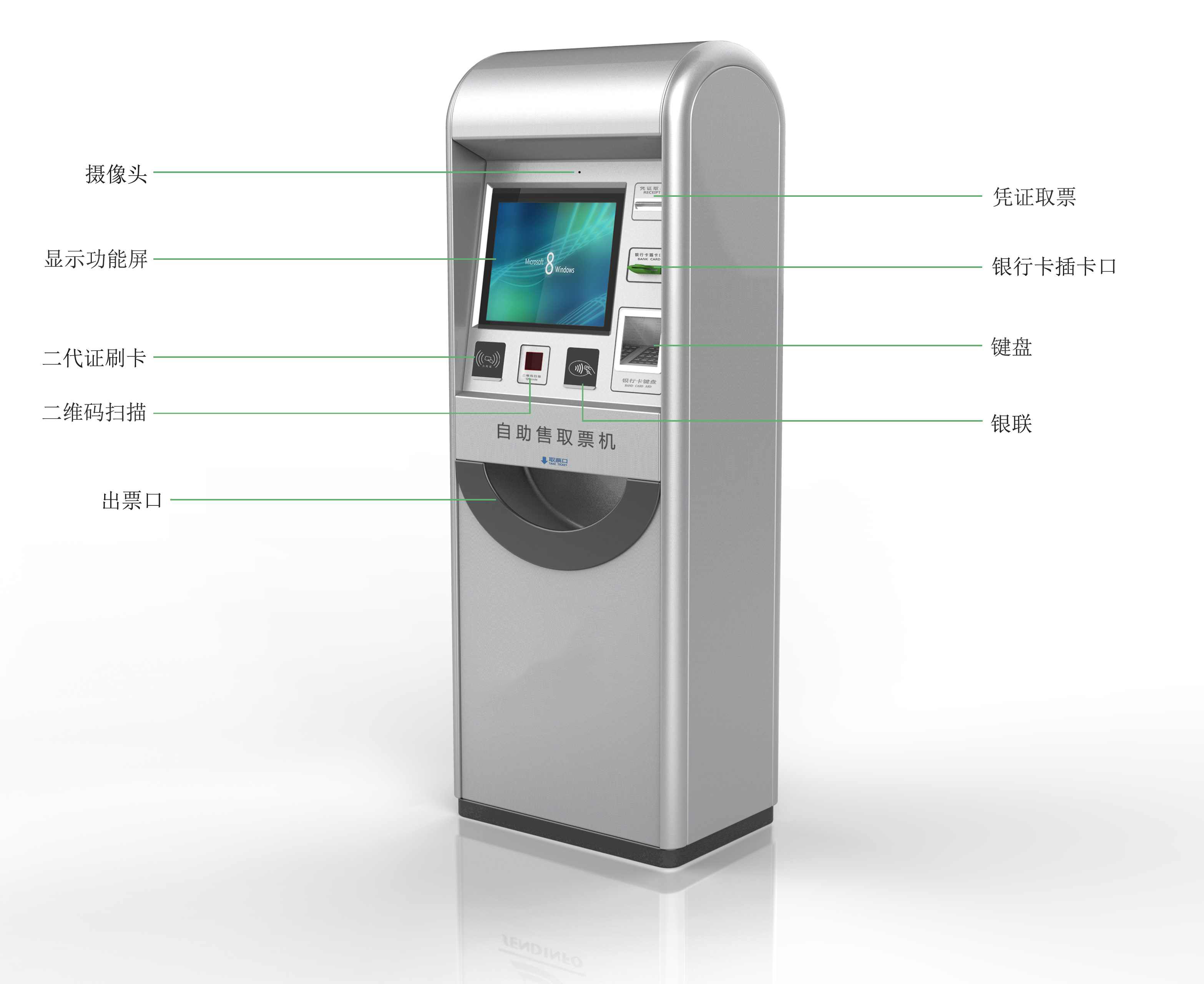 ? ? ? 自助售取票機集自助售票、取票、查詢打印等功能于一體,可通過互聯(lián)網(wǎng)連接,實現(xiàn)不同景點聯(lián)合售票,異地售票。采用大屏顯示,提供良好的交互界面,可作為景點與游客的溝通渠道之一,為游客提供景點信息查詢,意見及建議等反饋等服務(wù),有利于降低景區(qū)服務(wù)成本,改善游客體驗