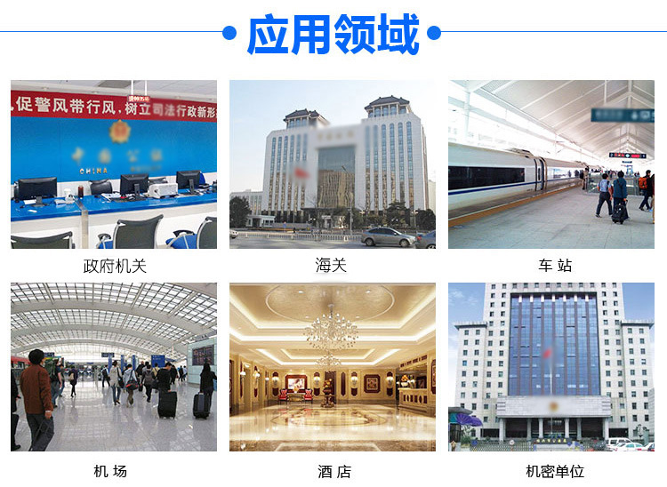 適用于酒店、網吧、賓館、機場、考場入口;公安、邊防、展館、公證處、銀行、證券;監獄管理等場所。