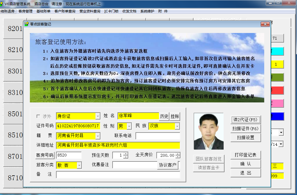博奧智能推出的一款專業(yè)的V6酒店管理系統(tǒng)軟件集成六大模塊,軟件界面直觀,功能強(qiáng)大,操作簡單,充分結(jié)合中國酒店業(yè)的管理實(shí)情,系統(tǒng)界面簡潔優(yōu)美,操作直觀簡單,無需專門培訓(xùn)即可正常使用。是廣大酒店賓館,飯店,旅館,招待所等信息化管理場所理想的賓館客房管理軟件;同時(shí)免費(fèi)對(duì)接門鎖接口(IC卡鎖、指紋鎖、刷臉鎖)、身份證閱讀器接口等。