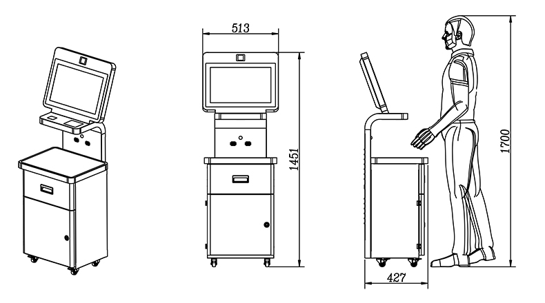 ? ? ? ?多功能自助終端一體機整機符合人體工程設計,機身大氣,外形精細、新穎、美觀、簡潔,觸顯一體操作、簡單方便,同時具有拓展性強的特點,可做為自助售書一體機、自助收銀一體機、檔案管理一體機、政務自助辦理終端、訪客登記一體機等,本設備支持Windows系統和Android系統,供客戶選擇,可根據客戶需求定制外觀和功能。