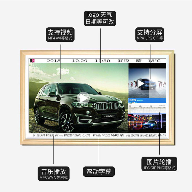 深圳博奧智能定制商場酒店場藝術(shù)館居家原木色畫框自動(dòng)播放廣告機(jī)