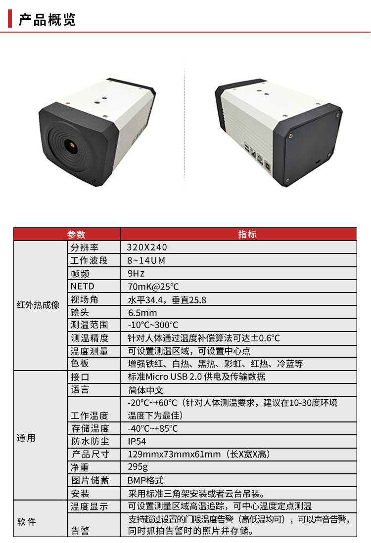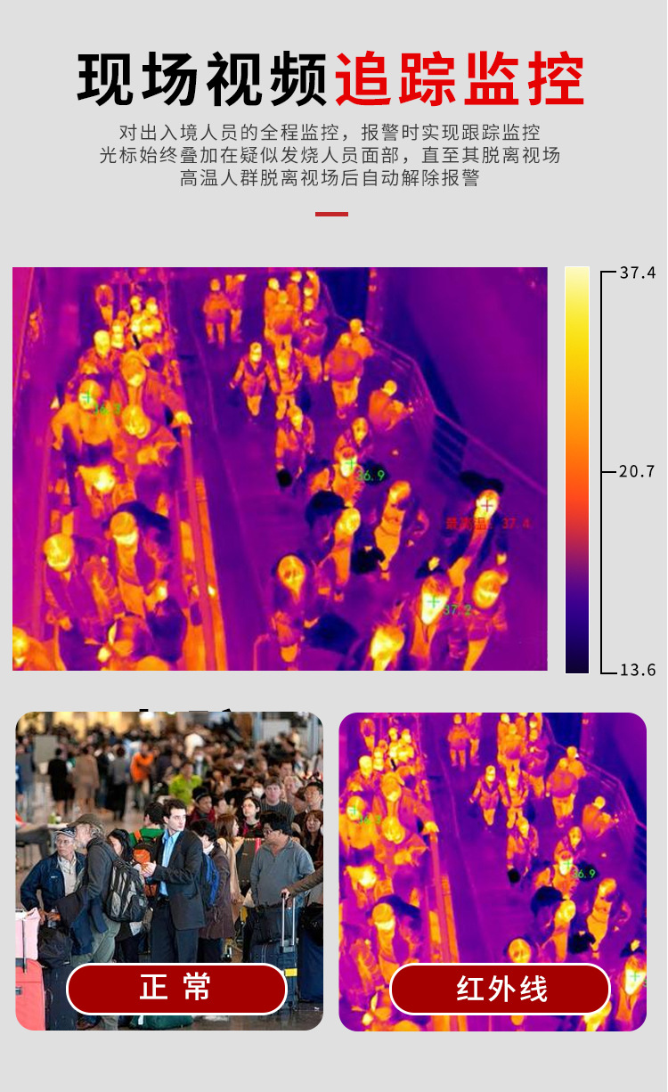 紅外熱成像儀是一款高精度的熱成像,可以實(shí)時(shí)在線(xiàn)測(cè)量目標(biāo)物體的溫度,輸出熱像視頻,查看超溫狀況。搭配不同配套的平臺(tái)軟件,適應(yīng)人體測(cè)溫篩查,本文檔介紹針對(duì)人體測(cè)溫篩查使用方式。