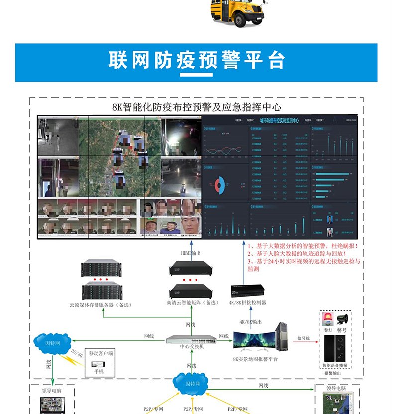 支持有線網絡/WIFI/4G聯(lián)網到防疫指揮中心平臺及第三方平臺;