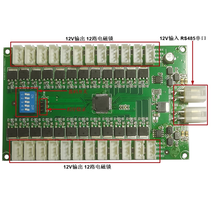 博奧智能開發的24路鎖控板主要應用到各種電子柜中控制電子鎖,控制電磁鎖的開與關,并向電子柜主控反饋電磁鎖的狀態信號,每塊板子可控制24路電磁鎖,產品采用RS485串口通訊,可以串聯控制更多的快遞柜儲物柜門;12V直流電源;性能性能穩定,體積小,方便安裝維護;結合鎖控板我公面向客戶定制開發各種智能電子柜管理系統;APP和小程序等軟件,實現人臉識別,指紋,刷卡開啟柜門,并經過電腦手機查看和操作電子柜。
