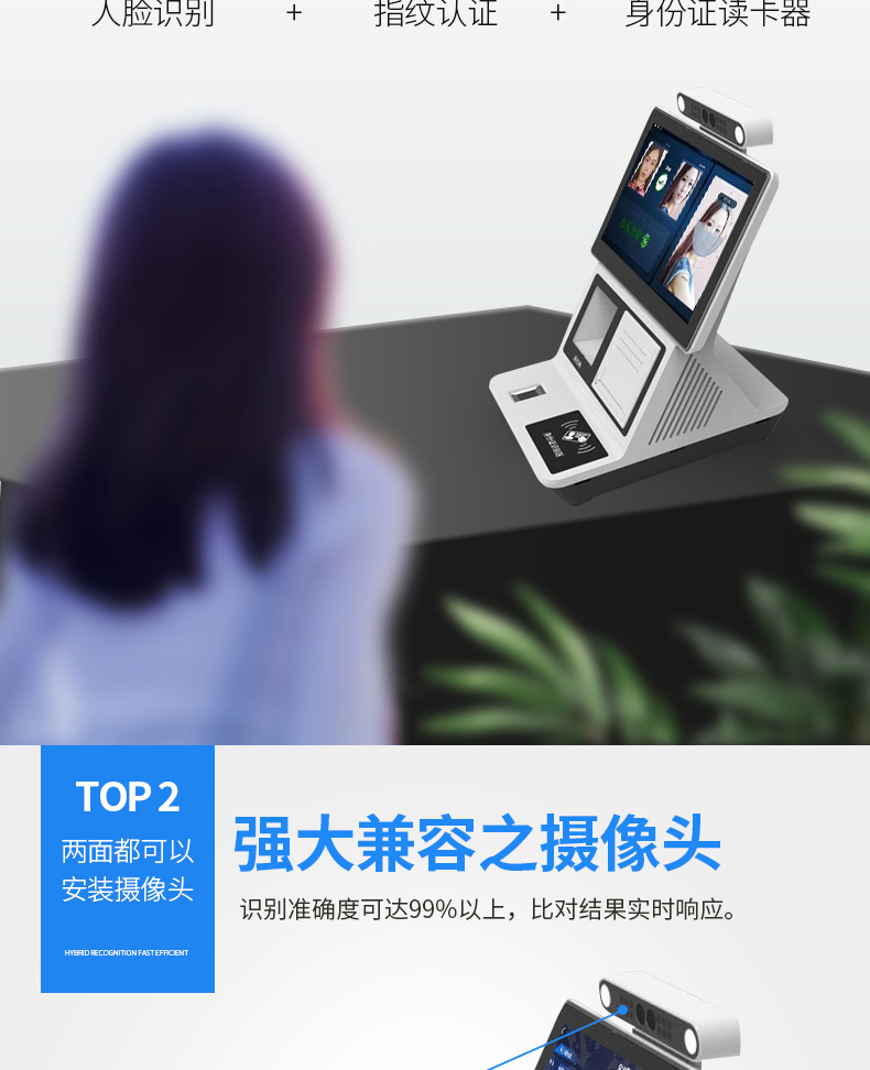 單屏智能訪客機系列產品,搭配13.3寸雙面LCD顯示屏幕(可選10.1寸),內嵌深度學習人臉識別算法。內嵌身份證解密模塊和指紋模塊。該產品具備人臉檢測、人證比對、活體判斷等強大功能。可有效幫助用戶管理訪客出入人員權限,有助于防范疫情。所有數據既可脫機管理,也可以連上云平臺。也可搭配人臉面板機聯動,實現訪客出入無紙化。可廣泛應用于小區門口、學校出入口、酒店入住,以及寫字樓等場景!