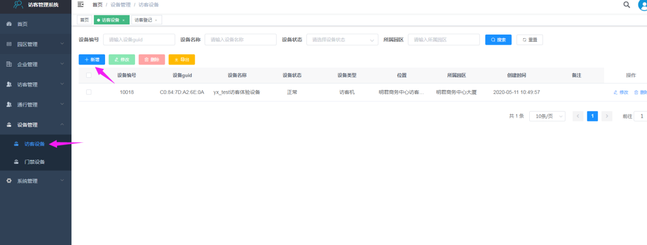 訪客設備中GUID就是設備的MAC地址,設備可以綁定到園區里面的某一棟樓。