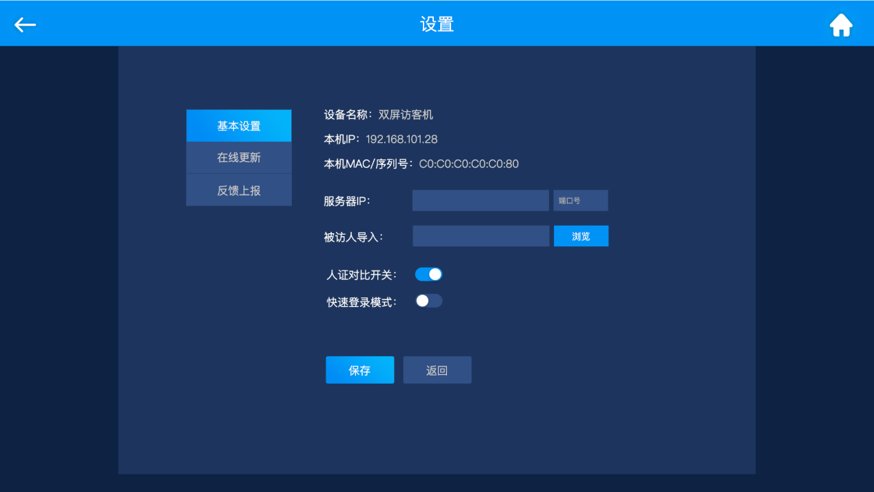 快速登錄模式可省略被訪人信息、簽離等操作,即刷身份證完成登記。