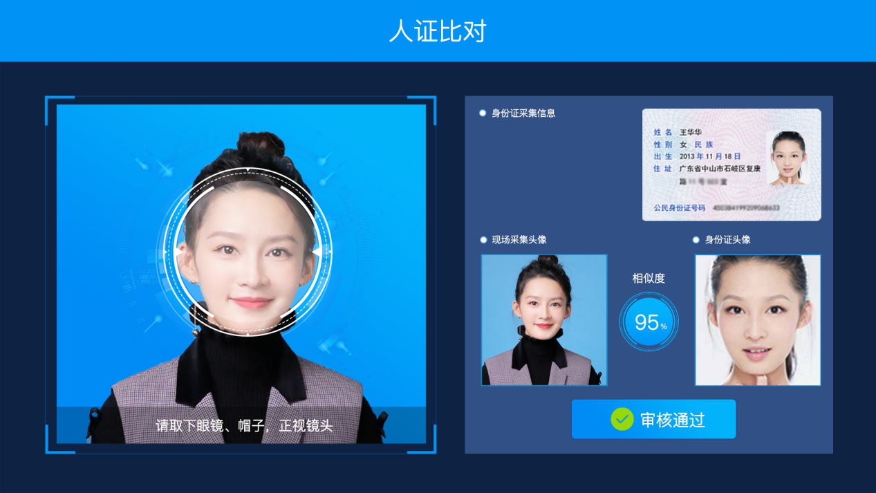 人證比對結果會實時顯示語音播報,比對結束后,會拍照留存照片。