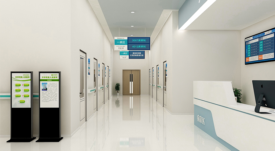 分診區(qū)域包括醫(yī)院不同科室的樓層入口、分診臺(tái)、走廊、休息等候區(qū)等區(qū)域,可以架設(shè)顯示屏幕,播放樓層科室布局介紹、分診信息、排隊(duì)叫號(hào)信息、醫(yī)院通知等內(nèi)容。