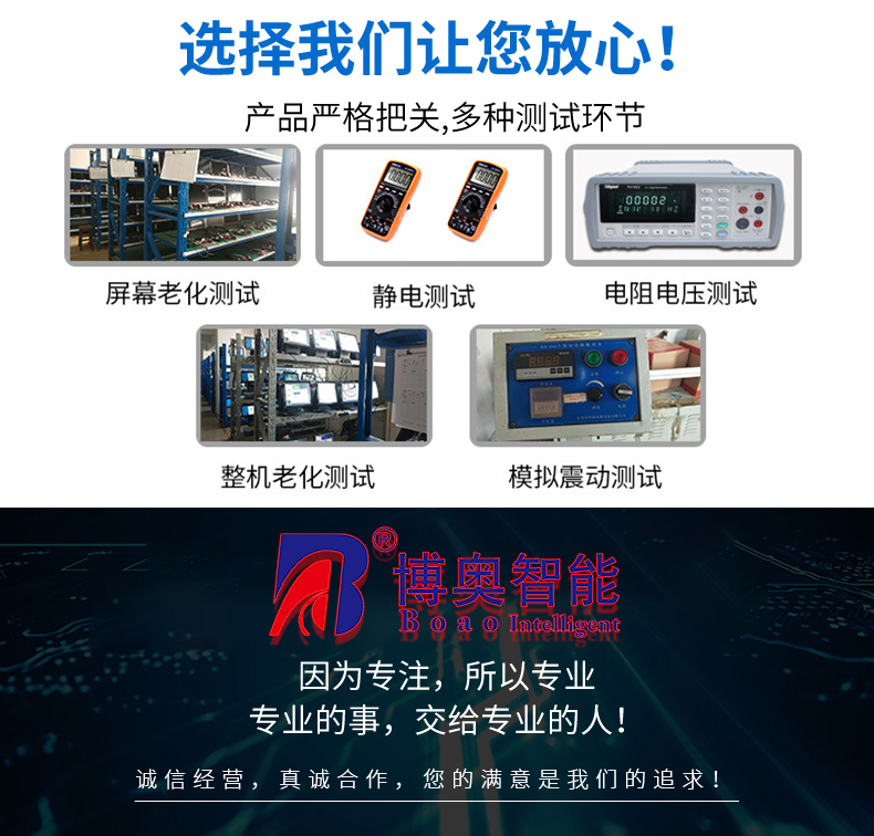 深圳市博奧智能科技有限公司成立于2011年,公司自成立以來一直專業致力于智能訪客管理系統、工業觸控計算機、自助終端一體機、工控主板、軟件等產品的研發、生產、銷售和服務;并向客戶提供智能訪客管理智能終端,自助終端一體機、工控主板、軟件等產品的解決方案