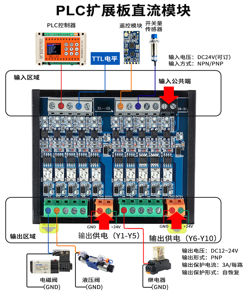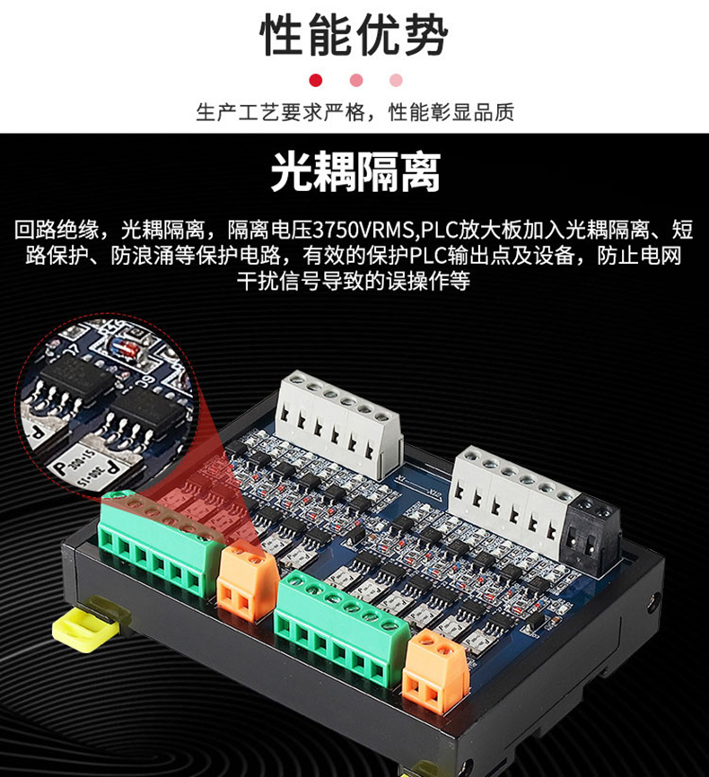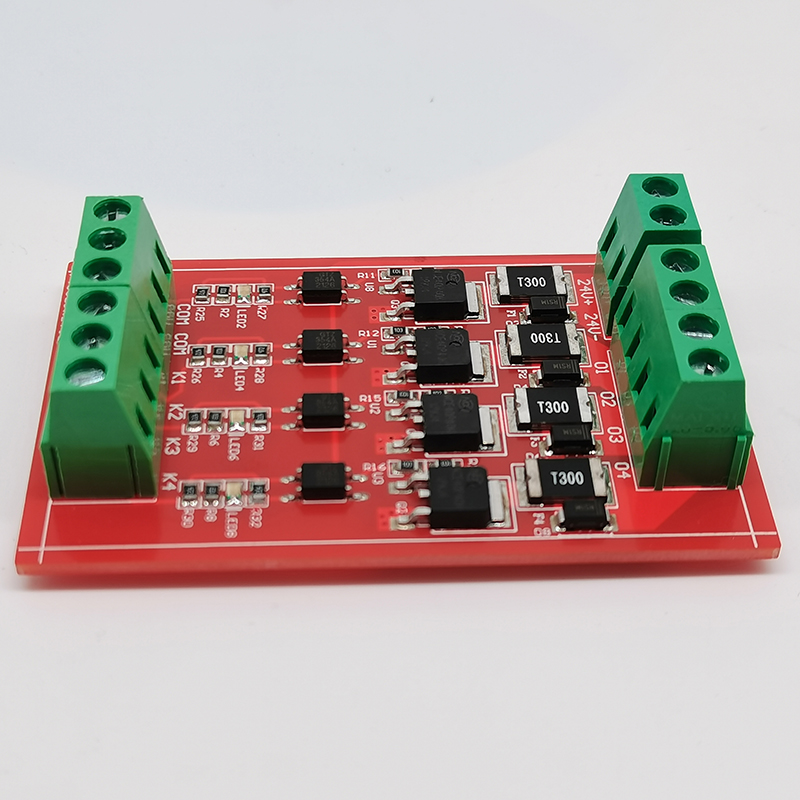 PLC擴展板直流模塊帶短路保護自恢復保險放大4路轉接板定制開發PCBA控制板方案