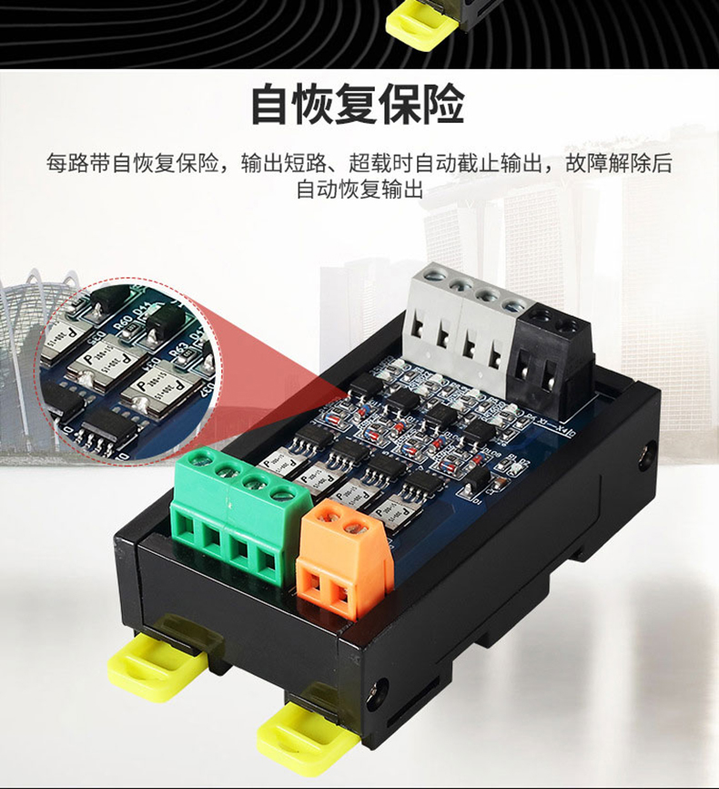 PLC4路擴展板直流模塊帶短路保護自恢復保險放大定制開發PCBA方案