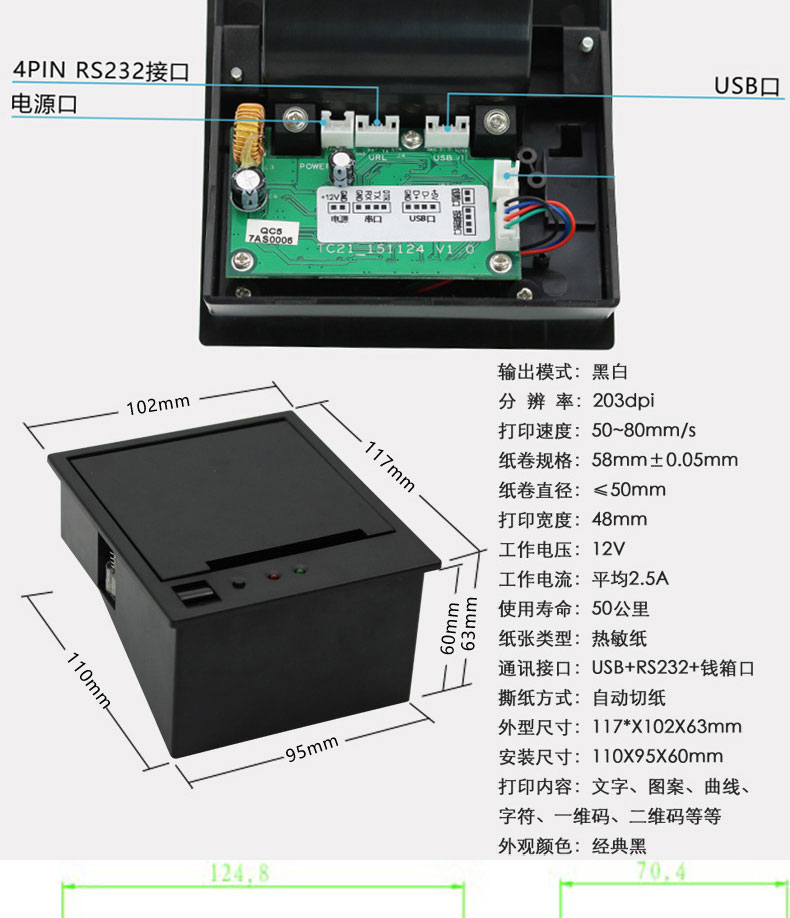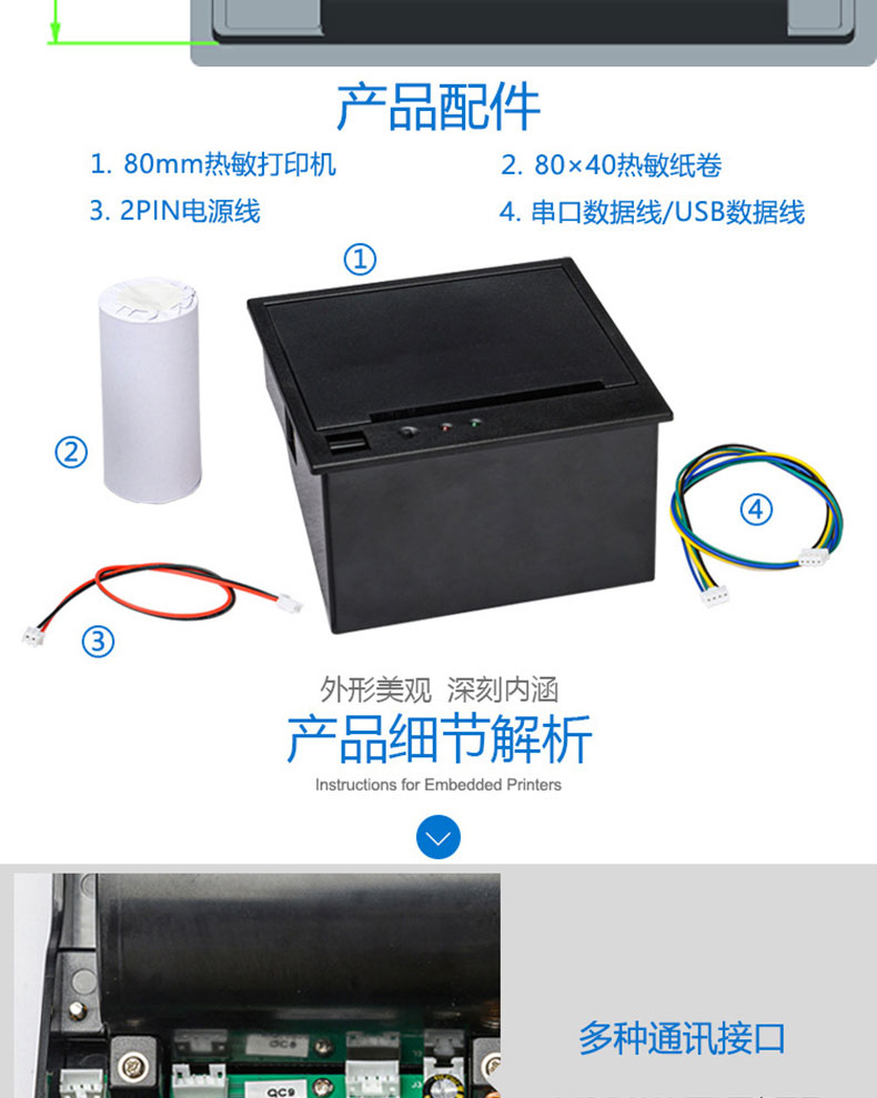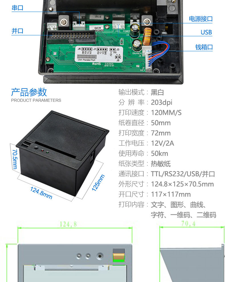 自助終端設備收銀電子稱帶切刀80mm嵌入式面板熱敏打印機PCBA控制板方案定制開發