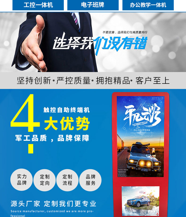 一站式解決方案供應(yīng)商,來圖來樣加工快速出樣品,提供相關(guān)硬件SDK協(xié)助開發(fā);專注觸控產(chǎn)品的設(shè)計(jì)生產(chǎn),擁有十年設(shè)計(jì)經(jīng)驗(yàn)工程師、技術(shù)工程、生產(chǎn)管理人員,以高效品質(zhì)服務(wù)客戶;從供應(yīng)商的管理,配件的選型,工藝流程的管理各個環(huán)節(jié)都嚴(yán)格把關(guān),通過建立自己的產(chǎn)品質(zhì)量標(biāo)準(zhǔn)并嚴(yán)格執(zhí)行,確保產(chǎn)品質(zhì)量可靠;體驗(yàn)流暢。