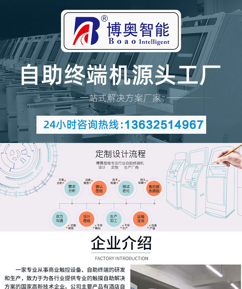 深圳市博奧智能科技有限公司成立于2011年,坐落于科技前沿——深圳,公司自成立以來(lái)一直專業(yè)致力于自助終端機(jī)、工業(yè)控制計(jì)算機(jī)、電子產(chǎn)品PCBA控制板、軟件等產(chǎn)品定制開(kāi)發(fā)服務(wù);同時(shí)批發(fā)銷售身份證閱讀器、證件OCR掃描儀、高拍儀、訪客機(jī)、人臉識(shí)別測(cè)溫機(jī)、閘機(jī)、安檢門、物聯(lián)網(wǎng)控制等產(chǎn)品;