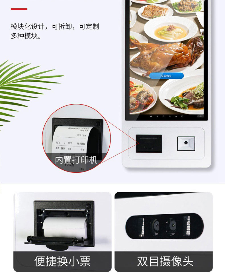 智能多功能收銀電容觸摸一體機人臉識別掃碼打印自助點餐結算終端