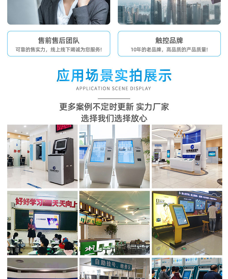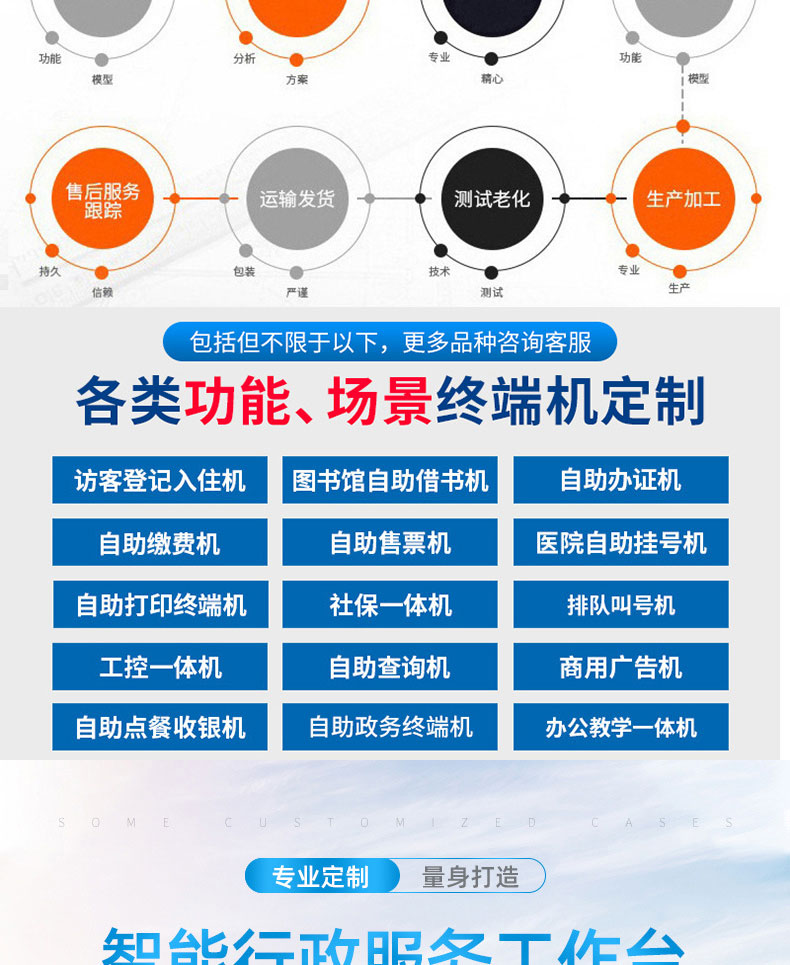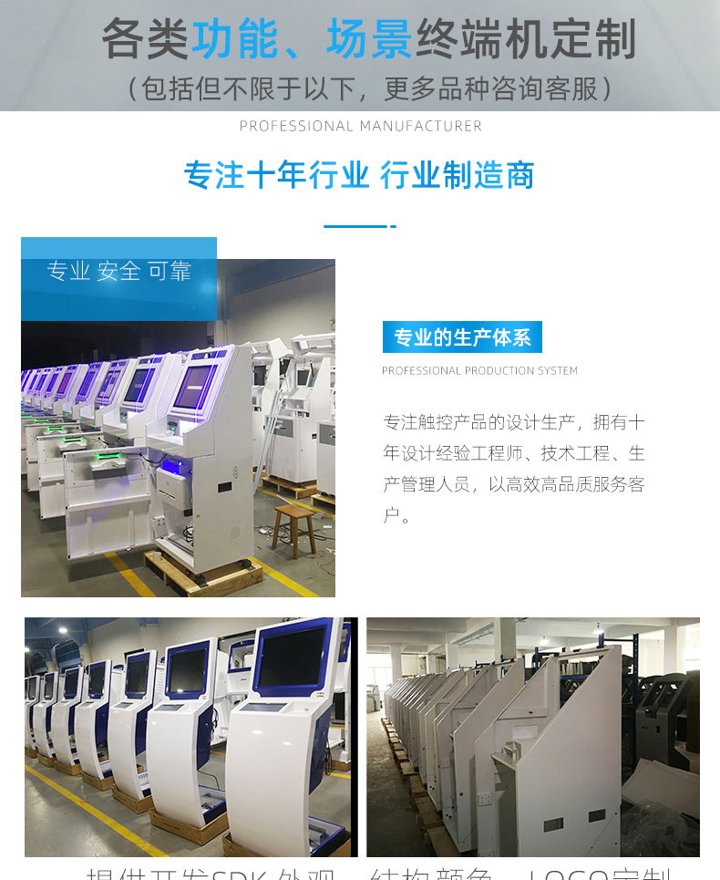 自助終端機(jī)定制:定制各種場(chǎng)景各種款式非標(biāo)終端機(jī);例如訪客機(jī)、景區(qū)自助取票機(jī)、醫(yī)院繳費(fèi)查詢機(jī)、醫(yī)院自助取單機(jī)、社保查詢機(jī)、室內(nèi)外廣告機(jī)、排隊(duì)叫號(hào)機(jī)、工控一體機(jī)、電力繳費(fèi)查詢機(jī)、圖書(shū)自助銷售機(jī)、便攜式計(jì)算機(jī)、酒店自助入住機(jī)、自助收銀機(jī)等終端。