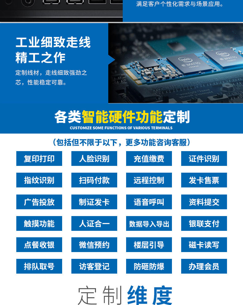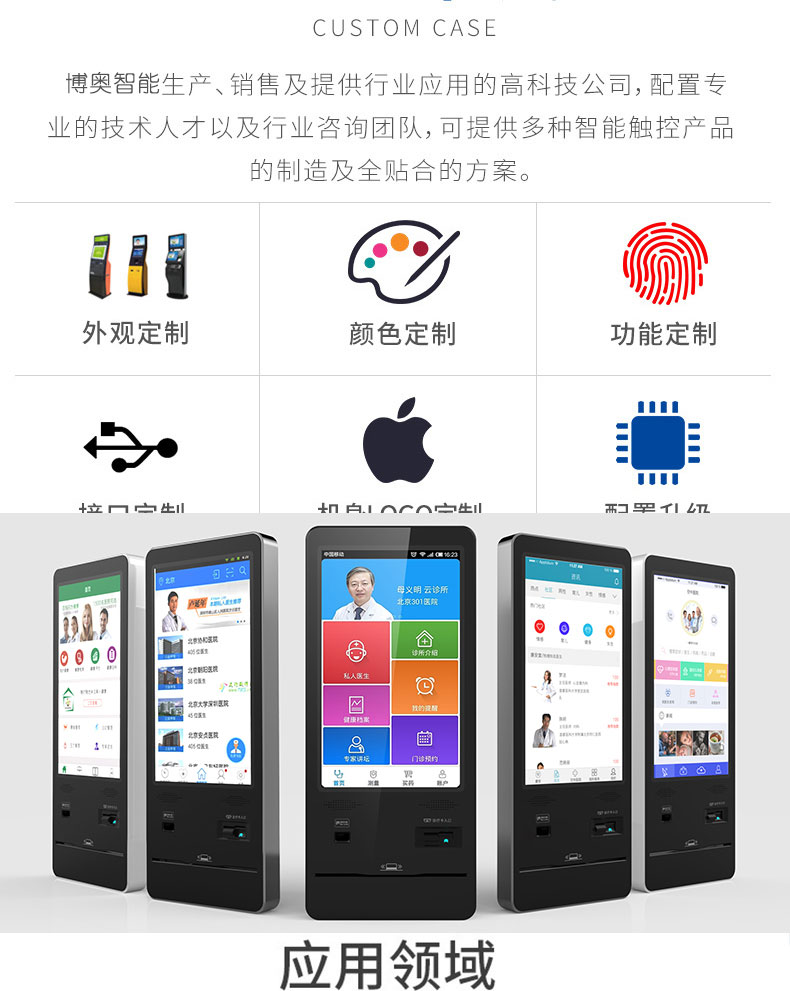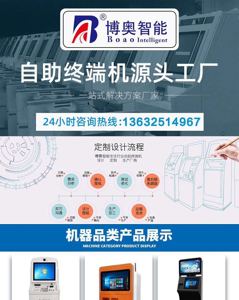 深圳市博奧智能科技有限公司專業(yè)提供自助終端機、觸摸查詢一體機、廣告機、液晶顯示器等產(chǎn)品的硬件、軟件研發(fā)與設計加工OEM/ODM等一站式服務;我們一直秉承以產(chǎn)品質(zhì)量為核心、客戶至上、服務共贏為宗旨,為金融、醫(yī)療、教育、人工智能、政府工程項目、智慧城市、軌道交通、商業(yè)自助服務、廣告?zhèn)髅降刃袠I(yè)提供質(zhì)量過硬的產(chǎn)品和優(yōu)質(zhì)的服務。