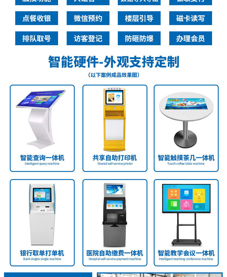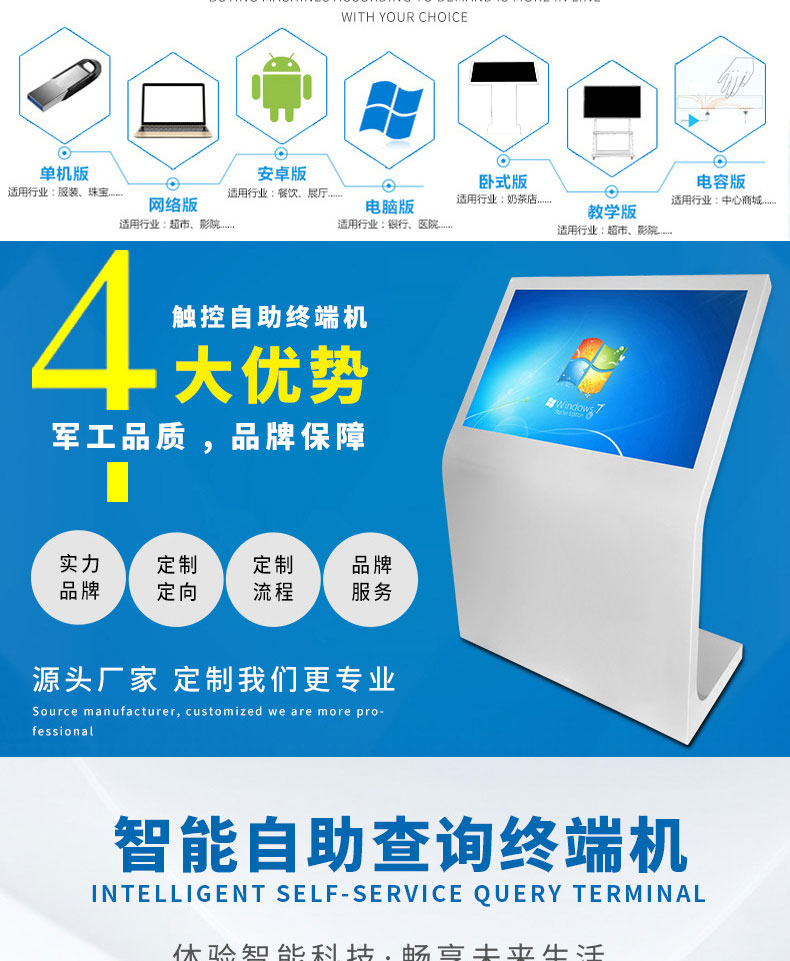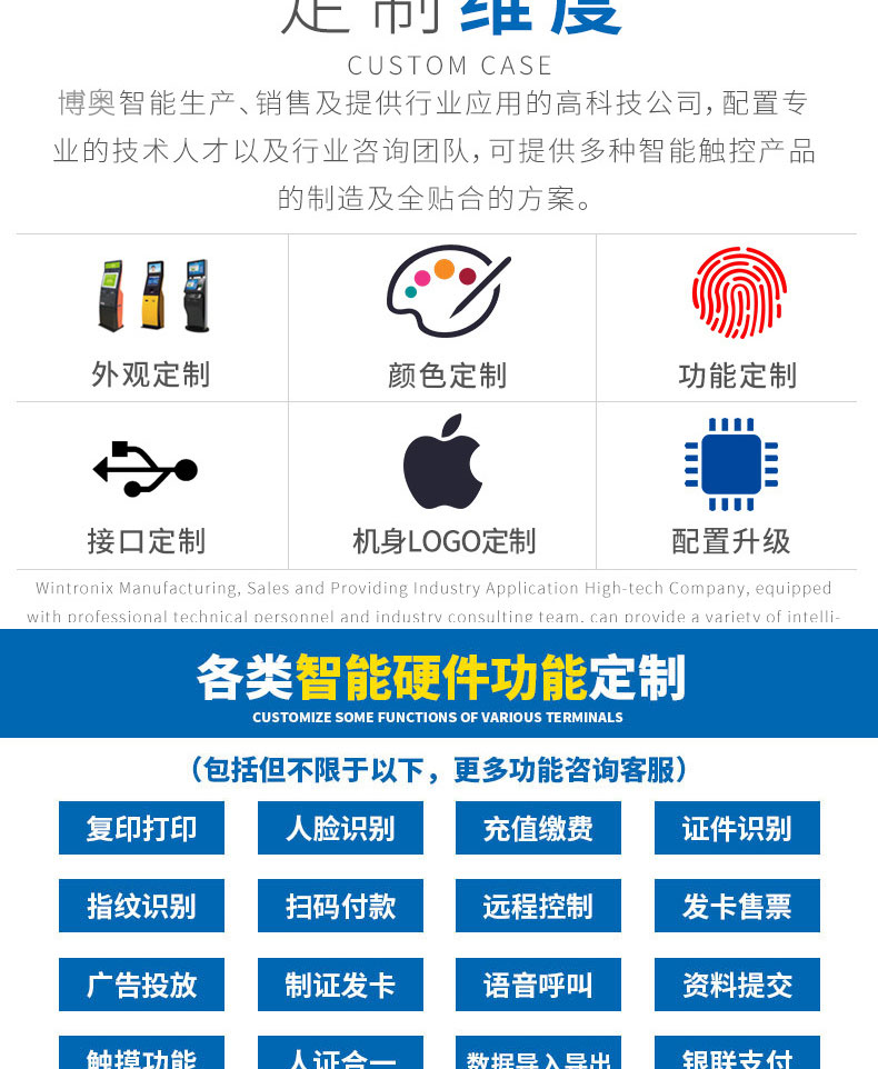 深圳市博奧智能科技有限公司專業提供自助終端機、觸摸查詢一體機、廣告機、液晶顯示器等產品的硬件、軟件研發與設計加工OEM/ODM等一站式服務;我們一直秉承以產品質量為核心、客戶至上、服務共贏為宗旨,為金融、醫療、教育、人工智能、政府工程項目、智慧城市、軌道交通、商業自助服務、廣告傳媒等行業提供質量過硬的產品和優質的服務。