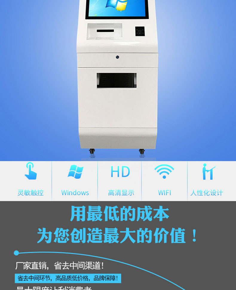 專業提供電腦觸控產品、自助服務終端的設計及生產服務,主要產品自助終端機、自助打印機、自助取票機、自助查詢機、自助繳費機、自助發卡機、自助政務一體機,產品使用于各個行業;醫院、學校、銀行、酒店、景區等。。。。。公司擁有專業的生產線,嚴格的質量把控。耐心的咨詢服務團隊及專業的技術負責團體。