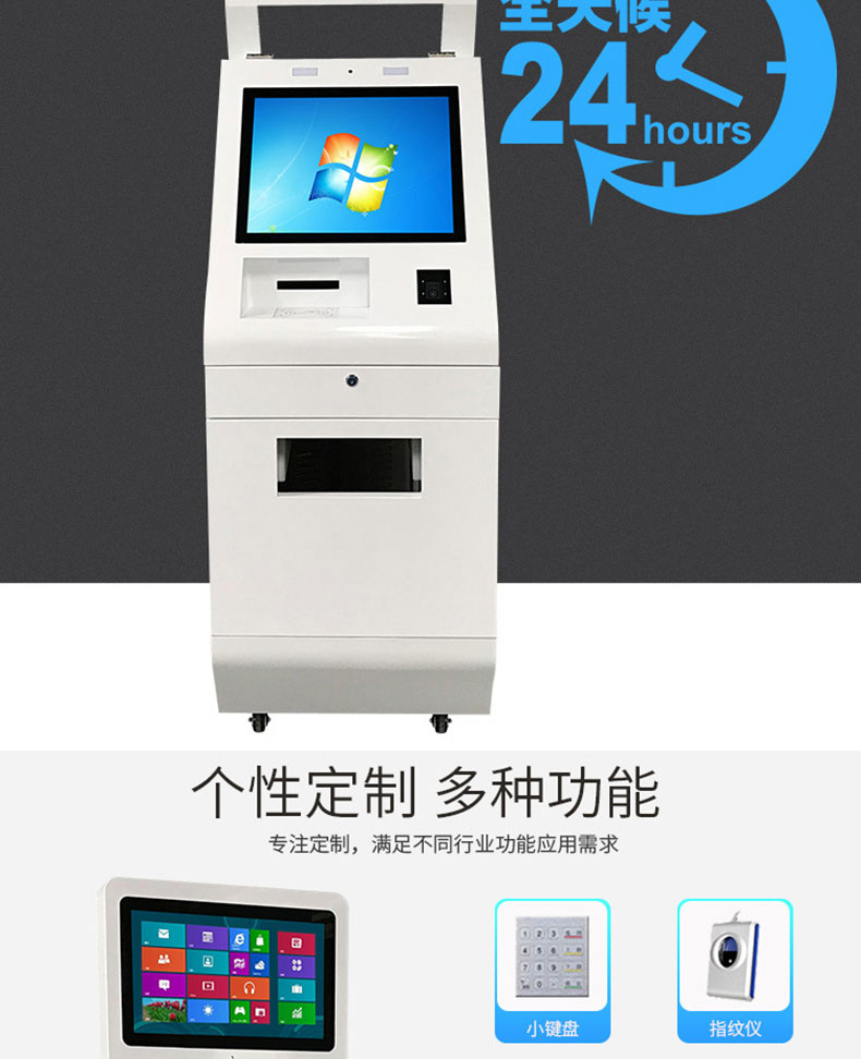 定制實用的自助終端設備,我們是專業。多種定制款式任意選擇,可根據需求定制外觀屏幕尺寸可選,配件數量可選,主機配置可選。