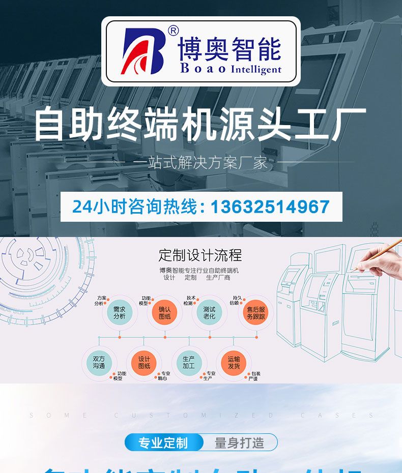 深圳市博奧智能科技有限公司專業提供自助終端機、觸摸查詢一體機、廣告機、液晶顯示器等產品的硬件、軟件研發與設計加工OEM/ODM等一站式服務;我們一直秉承以產品質量為核心、客戶至上、服務共贏為宗旨,為金融、醫療、教育、人工智能、政府工程項目、智慧城市、軌道交通、商業自助服務、廣告傳媒等行業提供質量過硬的產品和優質的服務。