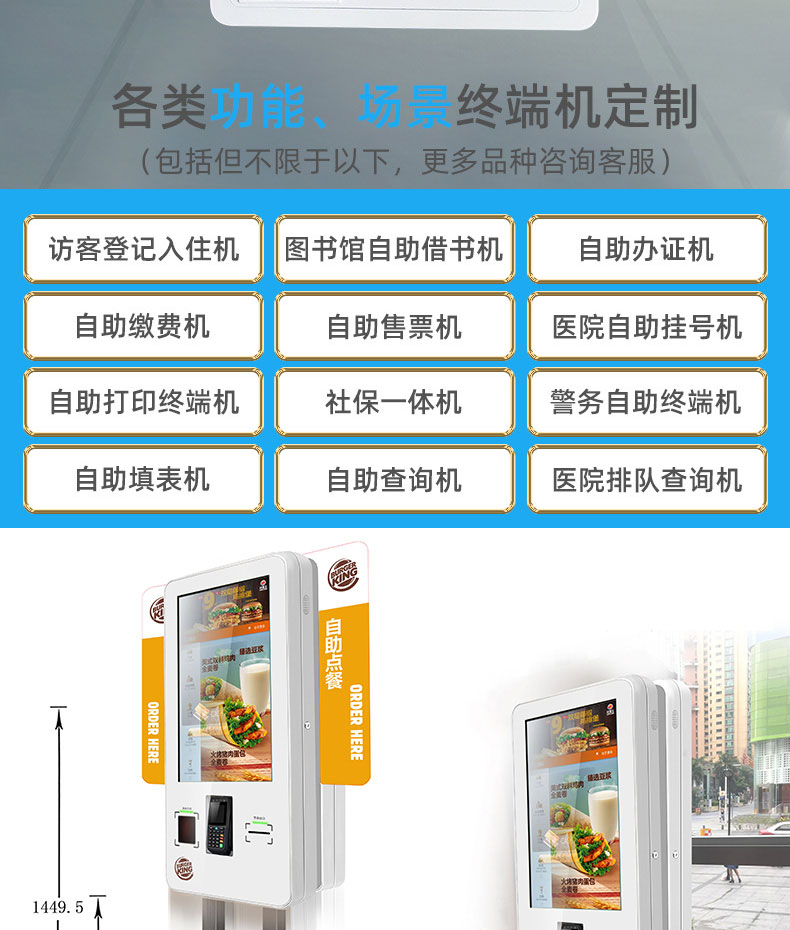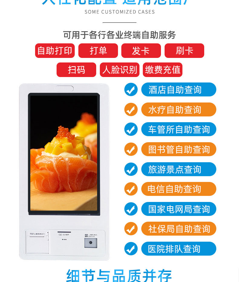 壁掛觸摸一體機醫院社保餐飲自助點餐機繳費充值智能終端系統軟件開發
