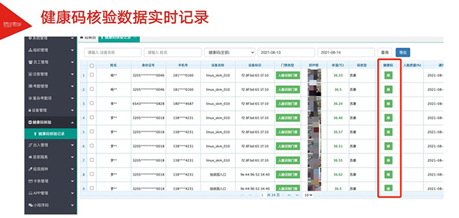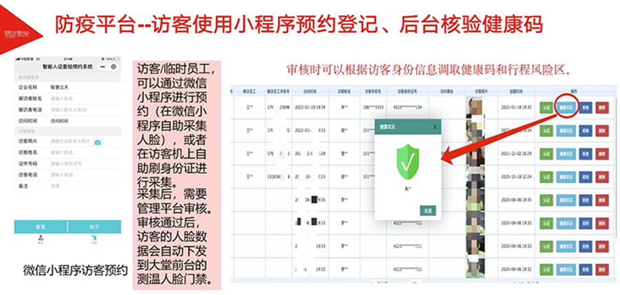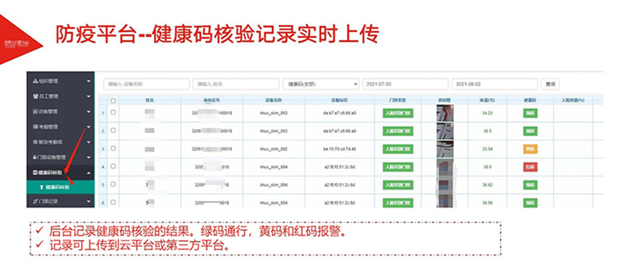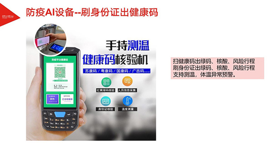 為加速各地落實(shí)健康碼助力疫情防控、一碼通行、科學(xué)防疫,健康碼測(cè)溫人臉識(shí)別一體機(jī),基于人臉識(shí)別算法和紅外熱成像測(cè)溫算法,可與國(guó)康碼、及各地健康碼平臺(tái)相對(duì)接,實(shí)現(xiàn)證、碼、臉 三合一,保證人臉精準(zhǔn)測(cè)溫,實(shí)時(shí)篩查通行人員健康情況,讓公共安全疫情防控更到位。該產(chǎn)品廣泛適用于辦 公、酒店、寫字樓、校園、商場(chǎng)、社區(qū)等公共服務(wù)場(chǎng)所,助力疫情防控,實(shí)現(xiàn)科技防疫。