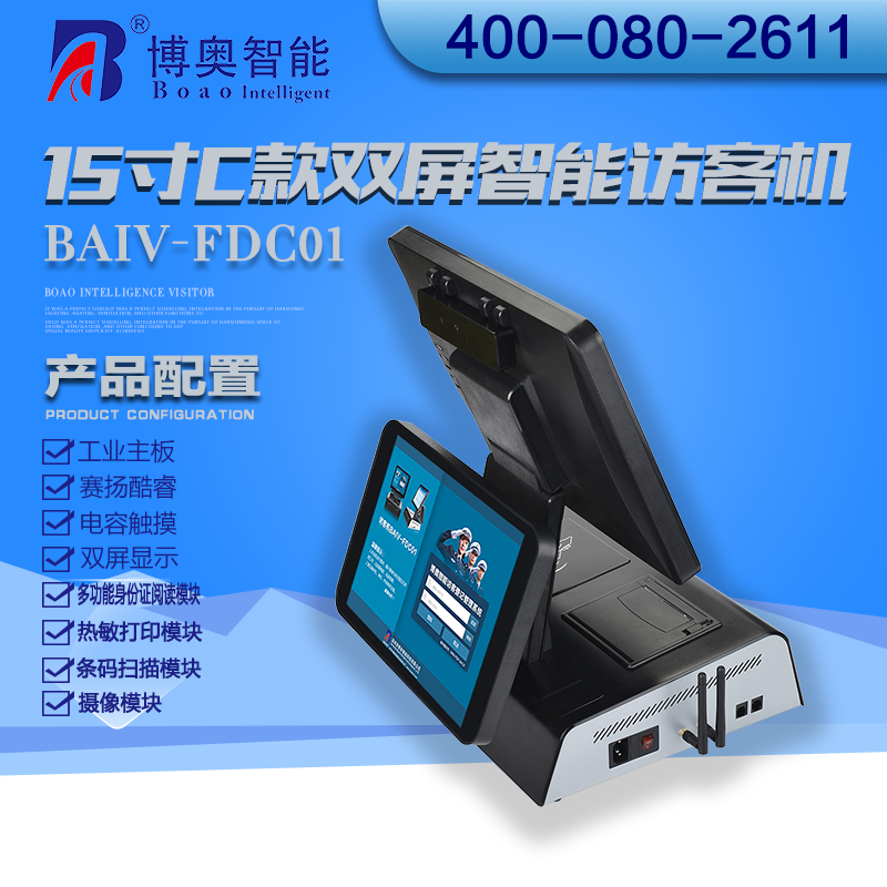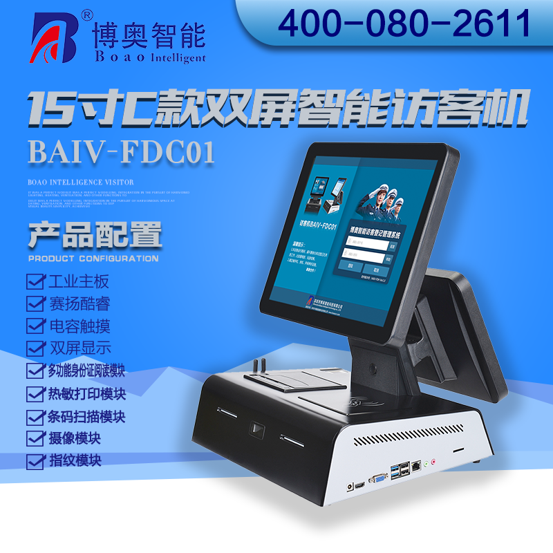 ? ? ? 15寸C款雙屏智能訪客機控制核芯是由博奧智能開發的工控主板,X86架構,有IntelJ1900和Intel CoRE平臺,工業級設計,可以全天24小開機,支持WIN 7、WIN 8、WIN 10等系統。