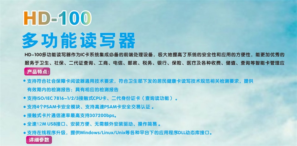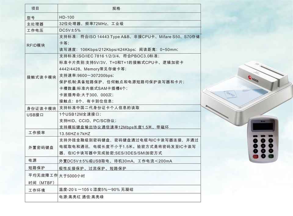 產(chǎn)品采用 RFID技術(shù),可支持社保卡、二代證、一代證的讀取和寫入;支持金融 IC卡讀寫;支持銀聯(lián)在線支付;可用于身份識別和驗證;可應(yīng)用于金融領(lǐng)域、交通領(lǐng)域、社保領(lǐng)域、一卡通領(lǐng)域等。