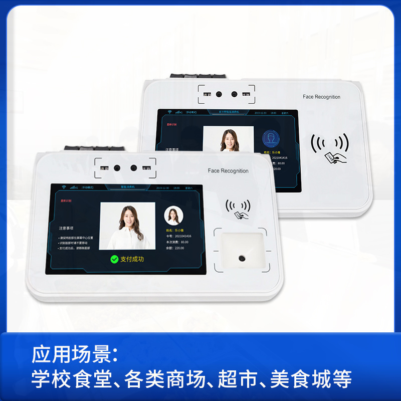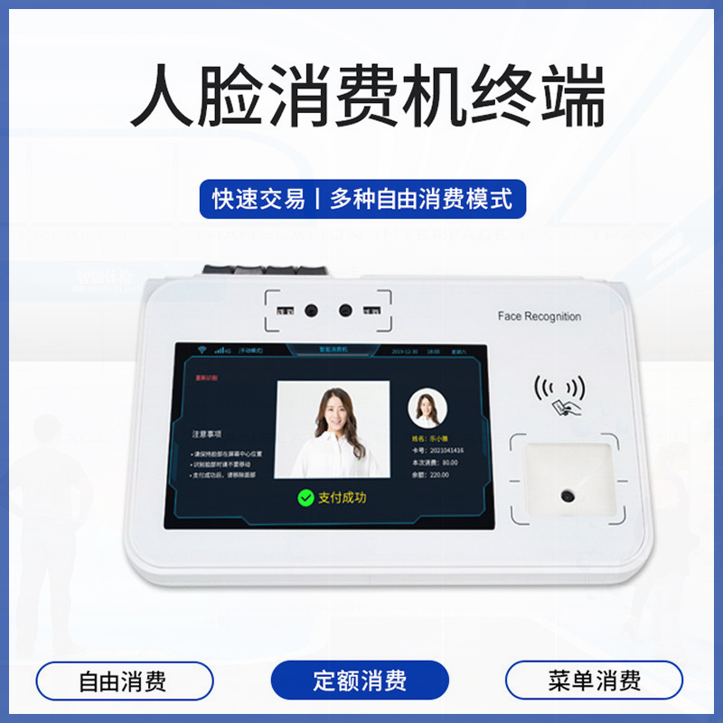 近些年,我司跟緊時代發展,充分了解市場需求后,決定在原有消費機基礎上研發改進新一代消費機,經過技術工程師的日夜攻克以及充分的實驗驗證,全新的非接觸式IC卡的消費機擴展人臉識別消費機正式面世。人臉智能+食堂消費系統有效的解決了傳統的飯票或者飯卡丟失、補辦的繁瑣步驟,刷臉支付更為智能、廣泛、方便。而且人臉智能+食堂消費更能凸顯作為機關單位與時代接軌的先進性、高效性人臉識別消費管理系統是當前廣泛使用的收費、食堂售飯系統。它采用了雙目結構光,雙目200萬寬動態模組、雙目活體檢測人臉系統,并結合現代管理方法設計而成。具有免接觸,無損耗,技術先進,系統擴張性好,無需維護,投資一步到位等優點,避免了因接觸IC卡的讀寫、油污、芯片裸露等缺陷造成的各種故障。是取代磁卡,無接觸式人臉的收費機,是廣大學校,企事業單位提高管理水平,實現電腦化的優先選擇。