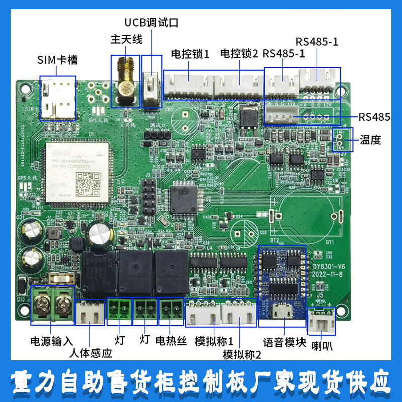 重力柜4G主控板人體感應智能語音播報售貨機免費提供開發指令集自助販賣機自動稱重控制板套件按需定制 免費開發工業控制 智能電器物聯家居主控PCBA方案硬件電路板