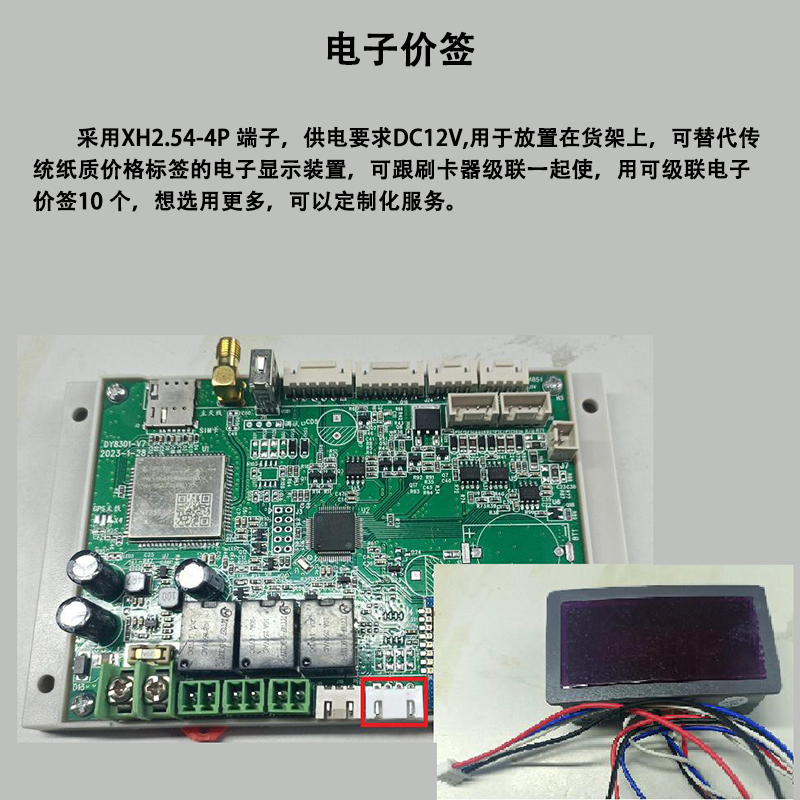 產品功能:4G通信 電插鎖 數字稱 語音模塊播報 人體感應 燈光控制 電子價簽 485IC 刷卡器