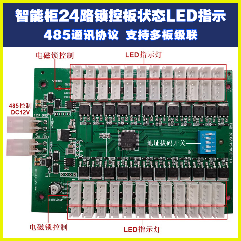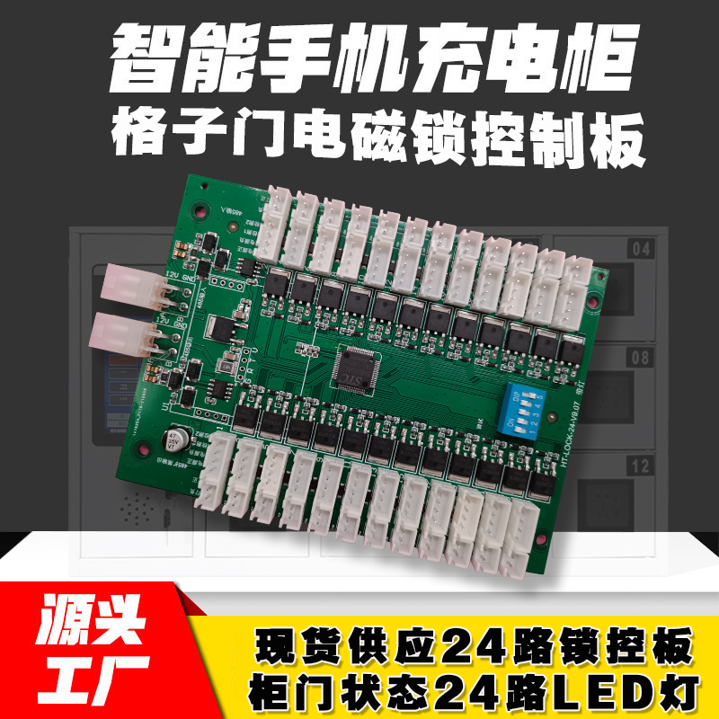 智能電子柜24鎖控板柜門狀態LED指示軟件APP小程序開發電磁鎖控制模塊按需定制 免費開發工業控制 智能電器物聯家居主控PCBA方案硬件電路板
