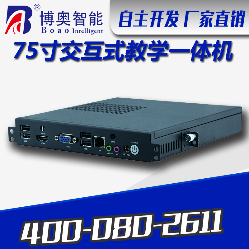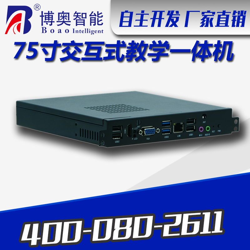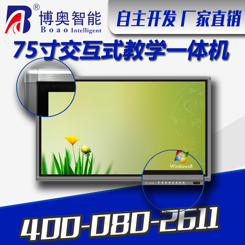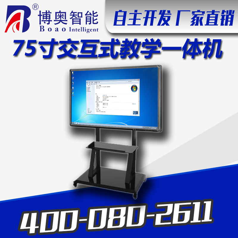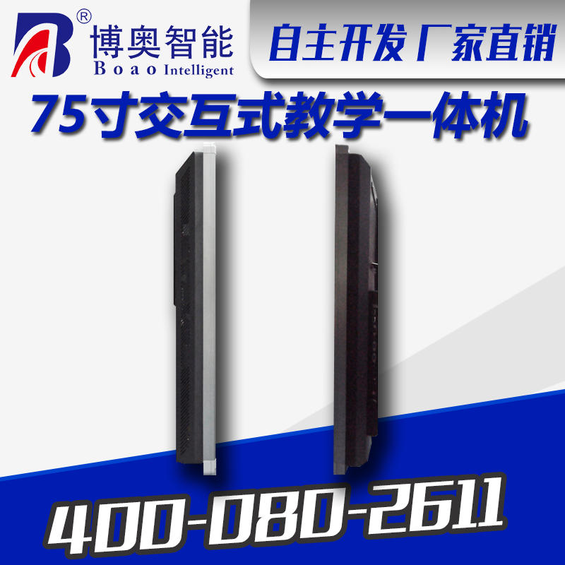 ? ? ?75寸交互式辦公教學(xué)一體機(jī)是由博奧智能自主開(kāi)發(fā)生產(chǎn);采用鋁合金氧化拉絲工藝,將多點(diǎn)紅外鑰觸摸屏,LG原裝IPS 4K硬屏,高音質(zhì)喇叭、攝像頭工業(yè)控制主板集成為一臺(tái)交互式辦公教學(xué)一體機(jī),內(nèi)部安裝智能化辦公教學(xué)軟件,完全替代“投影+計(jì)算機(jī)+無(wú)線WIFI+功放音響+電子講臺(tái)+電視機(jī)+高清視頻展臺(tái)(廣告機(jī))”等分體式傳統(tǒng)復(fù)雜辦公教學(xué)設(shè)備,,將傳統(tǒng)的顯示終端提升為功能全面的人機(jī)交互設(shè)備,設(shè)備性能穩(wěn)定,安裝方便,操作簡(jiǎn)單;通過(guò)此產(chǎn)品用戶可以實(shí)現(xiàn)書(shū)寫(xiě)、批注、繪畫(huà)、多媒體娛樂(lè)以及電腦操作,直接打開(kāi)設(shè)備即可輕松演繹精彩的互動(dòng)平臺(tái) ;由于交互式辦公教學(xué)一體機(jī)方案技術(shù)是博奧智能自主開(kāi)發(fā)開(kāi)生,提供配置、功能、尺寸等要求進(jìn)行定制。
