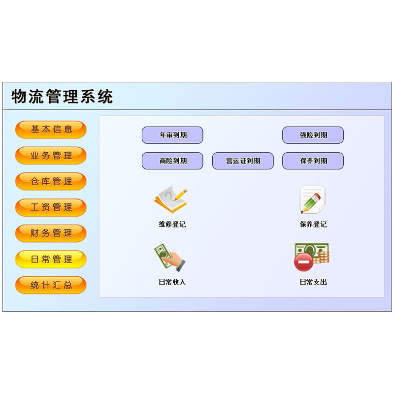日常管理:系統提供了年審到期、強險到期、商險到期、營運證到期、保養到期、維修登記和日常收入支出等管理功能。這些功能有助于公司合理安排各項日常事務,確保業務正常運行。