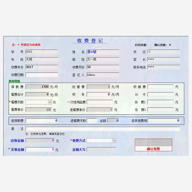 收費登記:便捷地記錄幼兒的收費情況,支持多種收費方式的錄入。