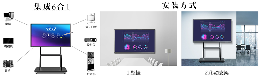 ? ? ? 65寸交互式辦公教學(xué)一體機(jī)內(nèi)置4MM鋼化玻璃紅外觸摸屏,防磕碰,損壞,超窄液晶顯示屏,178度廣視角,4K高清,讓屏幕靚麗安全,公司供應(yīng)多媒體一體機(jī)尺寸規(guī)格全,涵蓋55寸、60寸、65寸、70寸、75寸、84寸、86寸、98寸;每款一體機(jī)采用多點(diǎn)紅外觸控觸摸屏,靈敏度高,支持6點(diǎn)10點(diǎn)觸控,可多人同時(shí)在屏幕上操作演示,感應(yīng)速度靈敏,可以在書(shū)寫(xiě)功能界面下書(shū)寫(xiě)、批注,放大、縮小、擦除、拖拽等快捷操作,內(nèi)容支持PPT,圖片,Word,PDF等,同時(shí)可對(duì)對(duì)圖片進(jìn)行拖拽和放大縮小;支持IOS? Android Windows設(shè)備無(wú)線投屏顯示;支持多人多設(shè)備連接屏幕,共同操作畫(huà)面,實(shí)現(xiàn)多人同屏互動(dòng);內(nèi)置高保真音箱;前置百萬(wàn)像素級(jí)攝像頭,可以實(shí)時(shí)拍攝會(huì)場(chǎng)效果,外置接口豐富,HDMI、VGA、YPbPr、AV、USB、等多種接口方便使用,