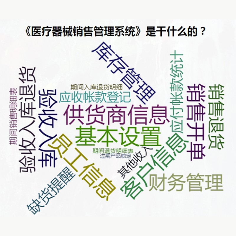 《醫療器械銷售管理系統》是一款針對醫療器械銷售行業定制開發的專業管理軟件。本軟件適用于中小型公司、商場、門店等醫療器械銷售企業,旨在幫助企業提高工作效率,優化管理流程,滿足國家藥監局的基本要求。