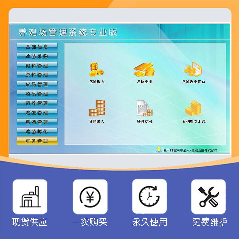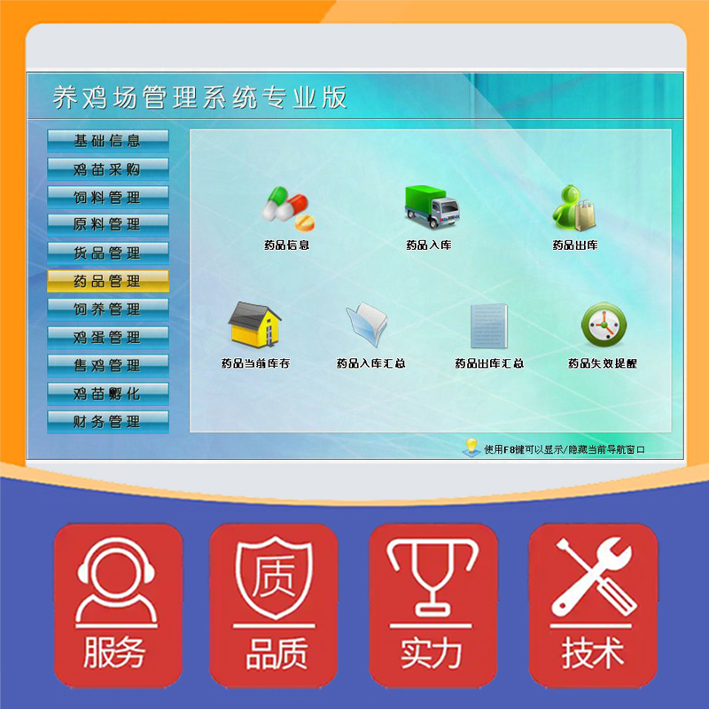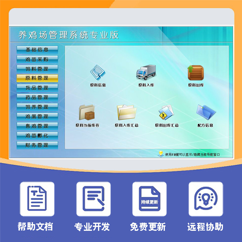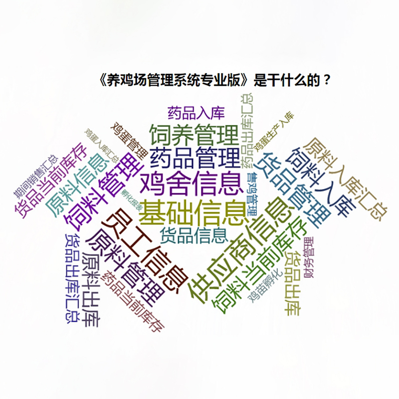 《養雞場管理系統專業版》是一款適用于中小型養雞場的管理軟件。主要包含基礎信息、雞苗采購、飼料管理、原料管理、貨品管理、藥品管理、飼養管理、雞蛋管理等功能。本管理系統多處具有快速輔助錄入功能,操作簡單,易學、易用;處理功能高效強大,是協助您的好幫手!