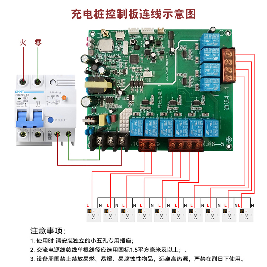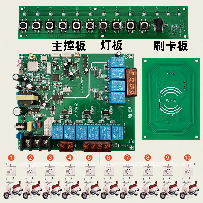 在接線方面,需確保輸入電源火線、零線、地線正確連接,輸出端口按標號順序接入充電設(shè)備,避免交叉接駁。主控板廣泛適用于老舊小區(qū)改造、商業(yè)綜合體及政府民生工程等場景,兼容性強,支持現(xiàn)有電力系統(tǒng)升級,是電瓶車充電的理想解決方案。