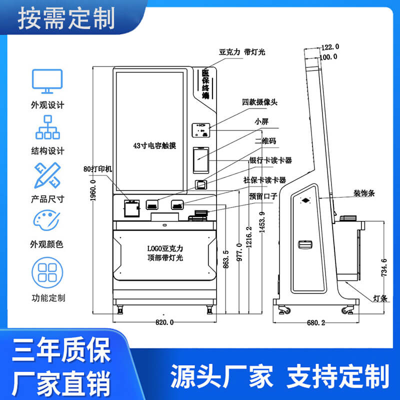 32寸醫保自助終端機是一款專為醫保服務場景打造的多功能自助設備,集多種核心模塊于一體,以穩定性能、全面功能和安全設計,為用戶提供高效、便捷的醫保相關自助服務,廣泛適用于醫院、醫保服務中心等各類公共服務場所。